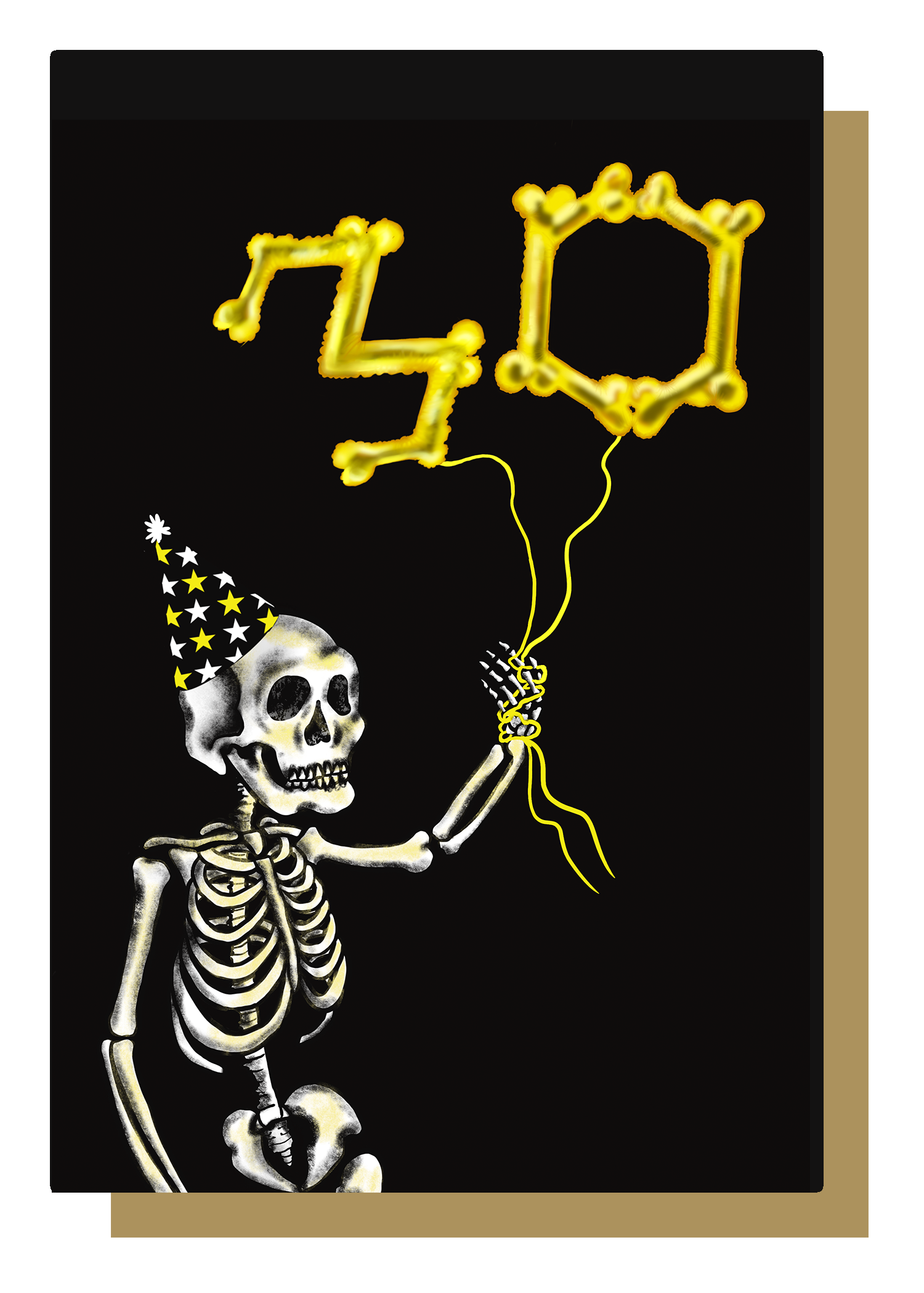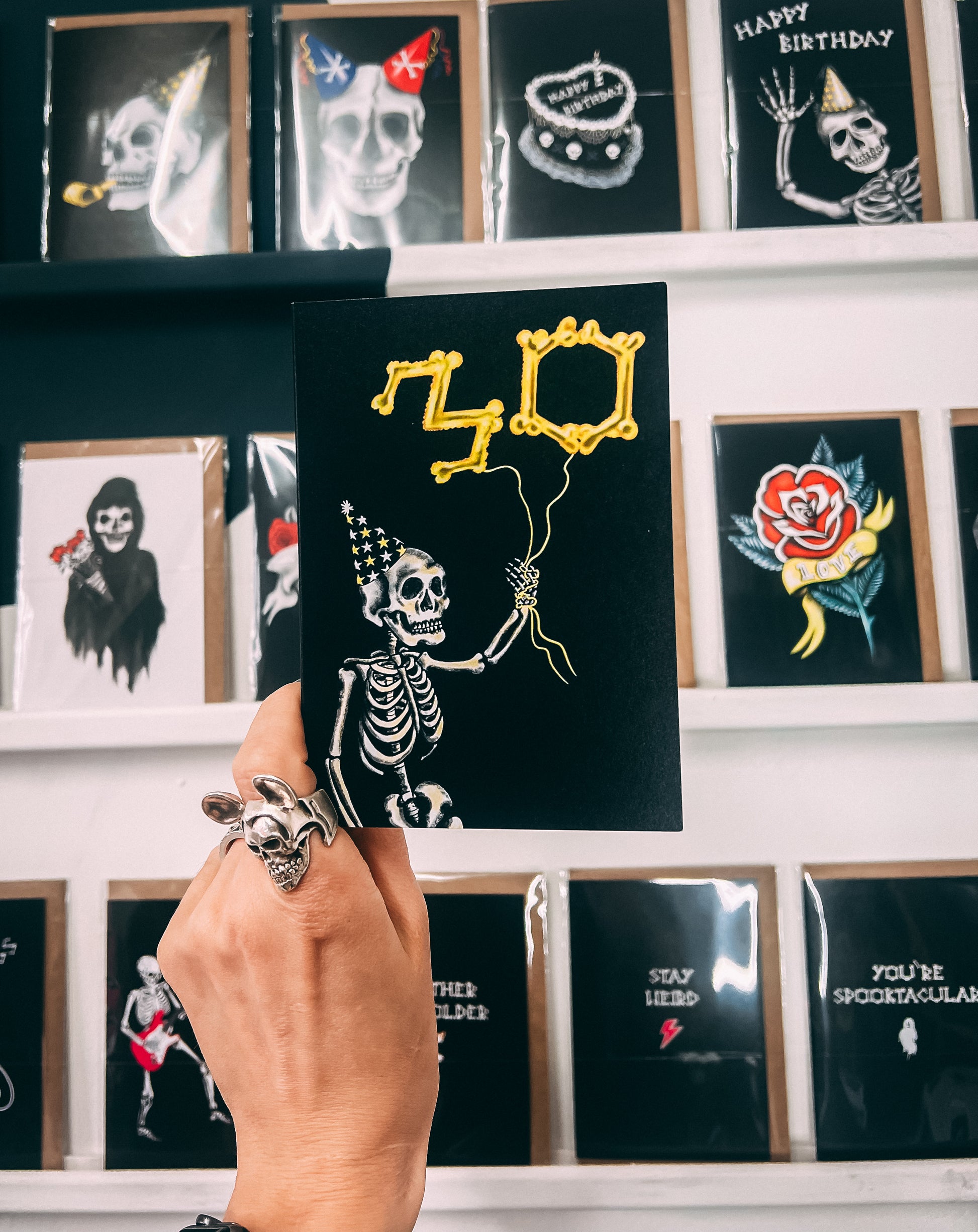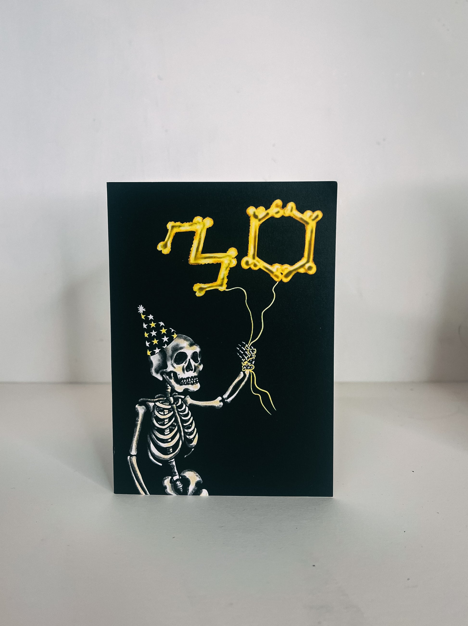 My balloon skeleton is a super fun gothic greetings card and a unique way to say happy 30th birthday