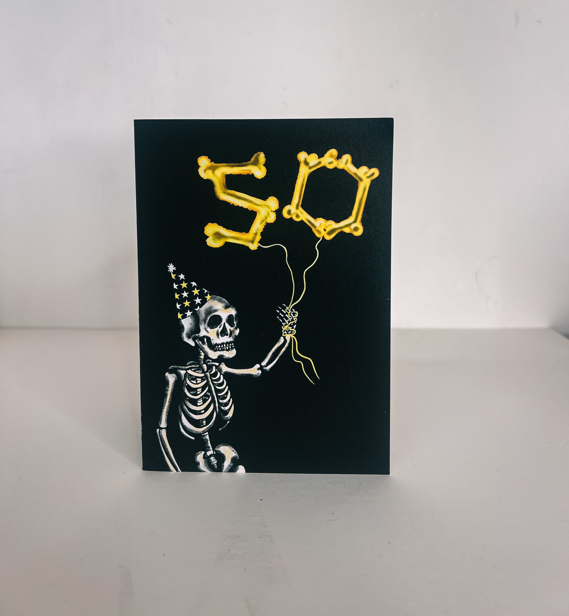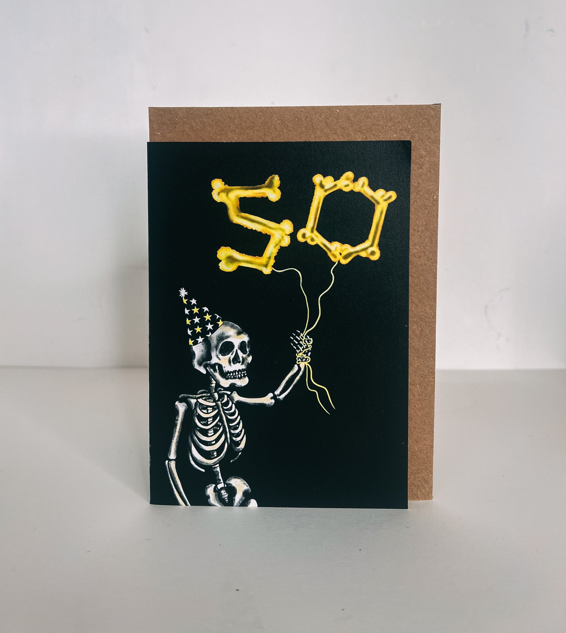 My balloon skeleton is a super fun gothic greetings card and a unique way to say happy 50th birthday