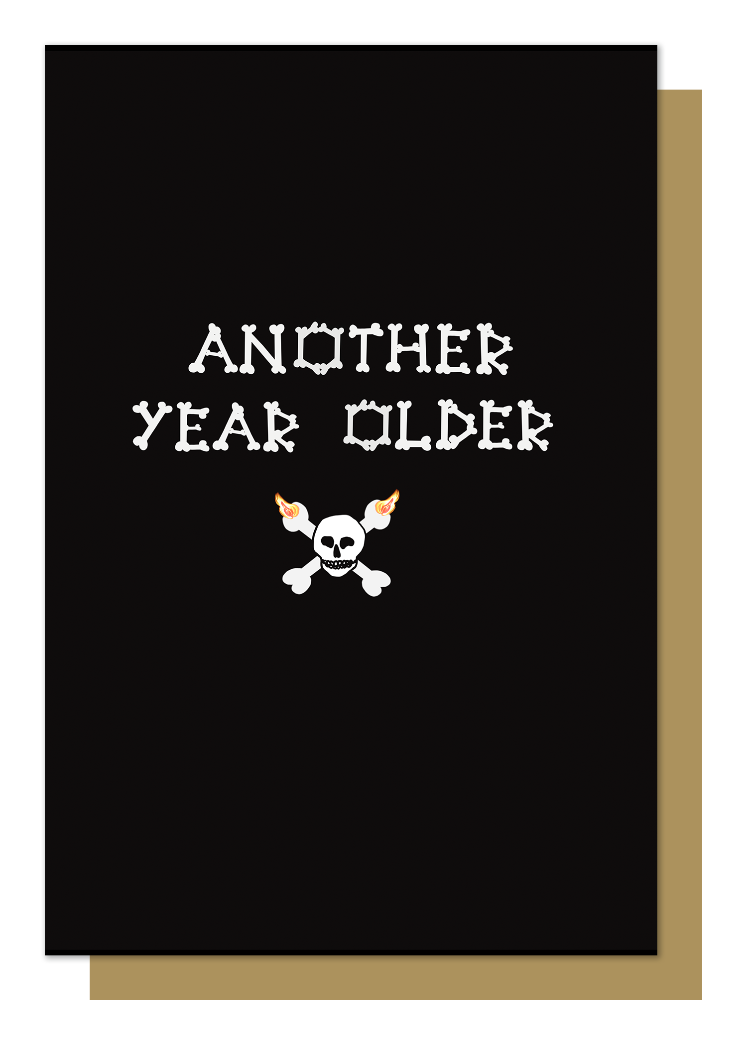A gothic birthday card with little skull detail and bones writing. Great for those who rock and have a wicked sense of humour.