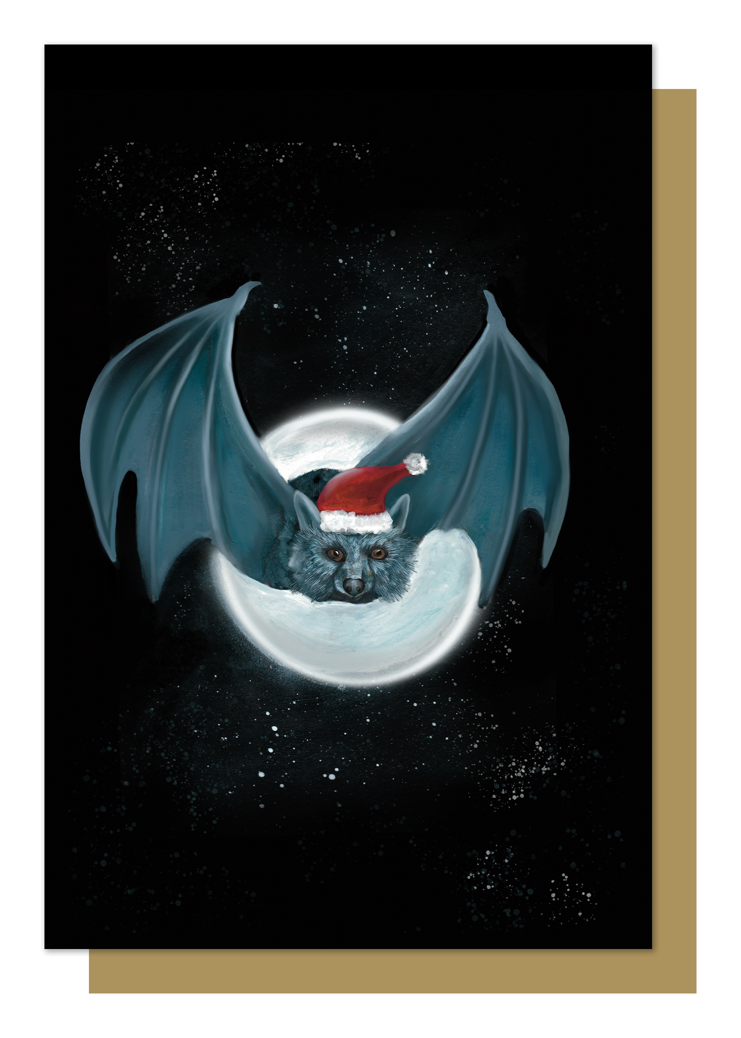 Bat with Santa Hat Christmas Card. A cute card that started life as a painting. Perfect for nature loves or fellow goths
