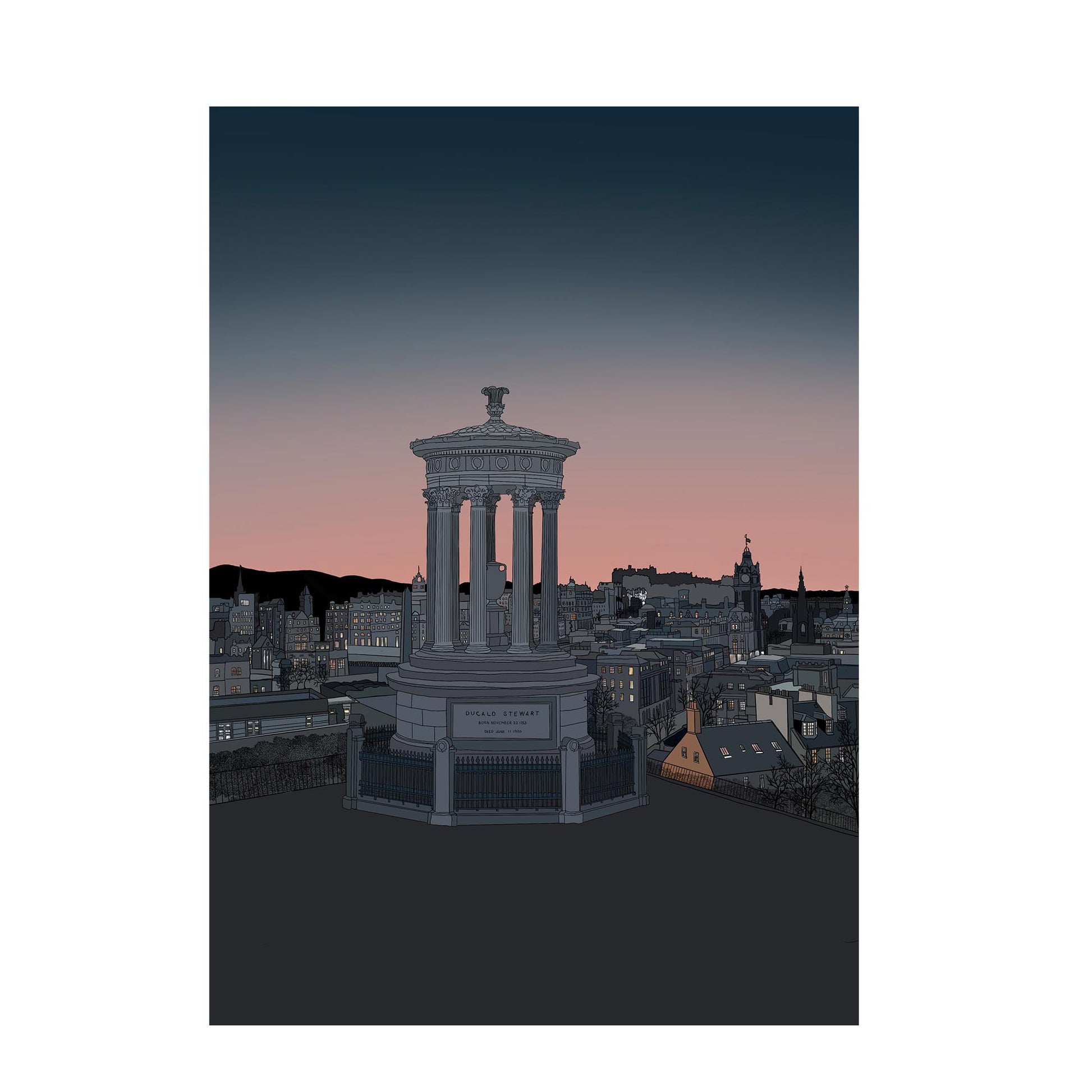 A beautiful winter pink sunset behind one of Edinburghs best city views