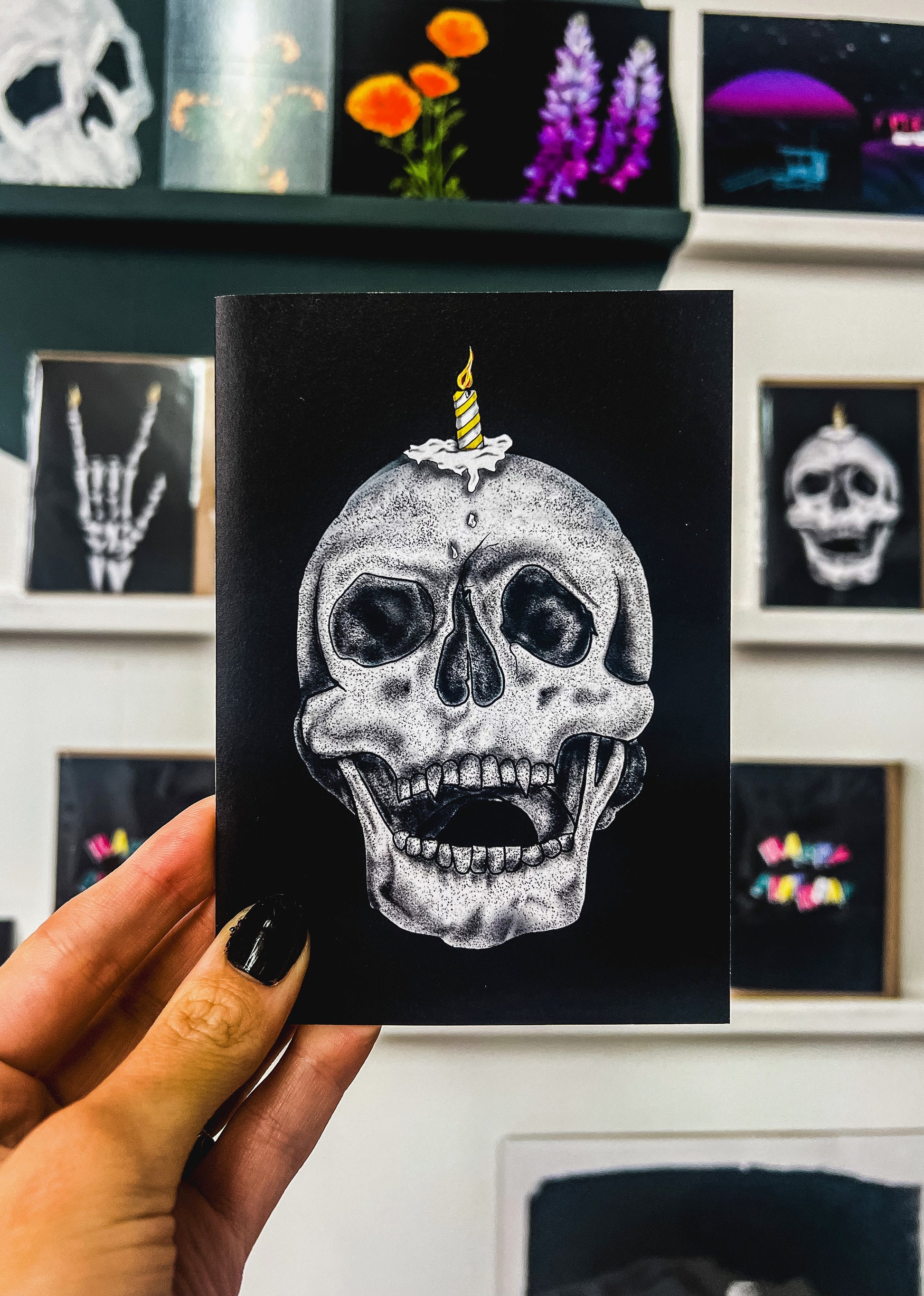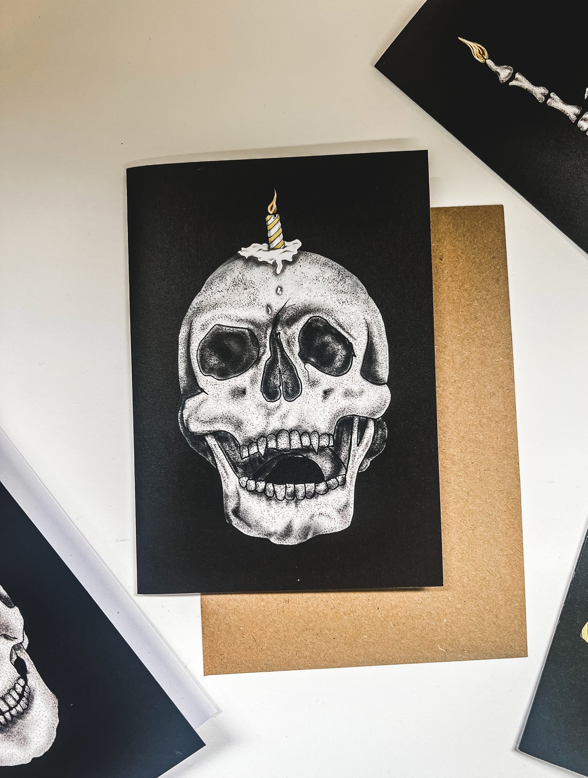 A Gothic Birthday Card packed with personality. My Candle Skull card is a super fun way to celebrate any party