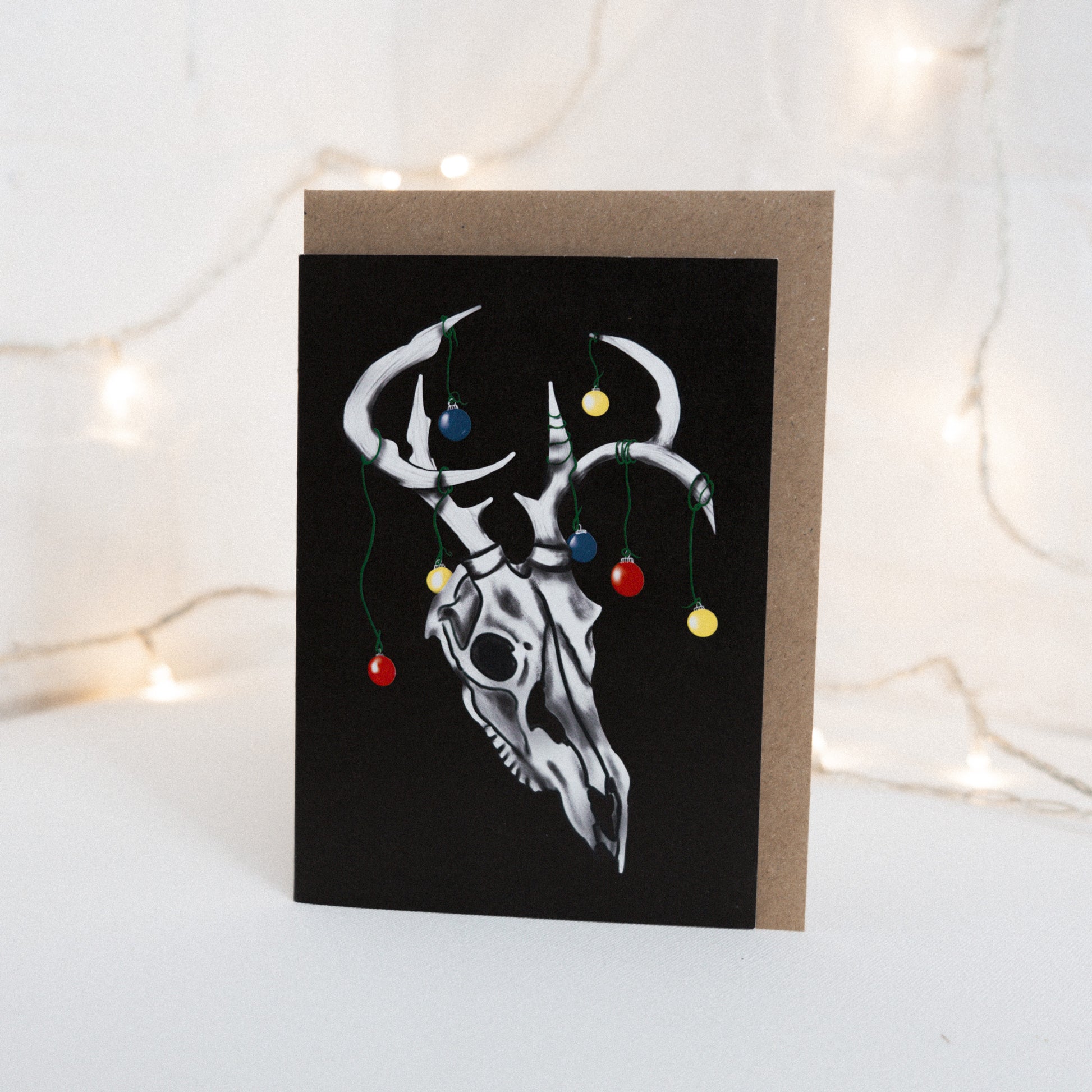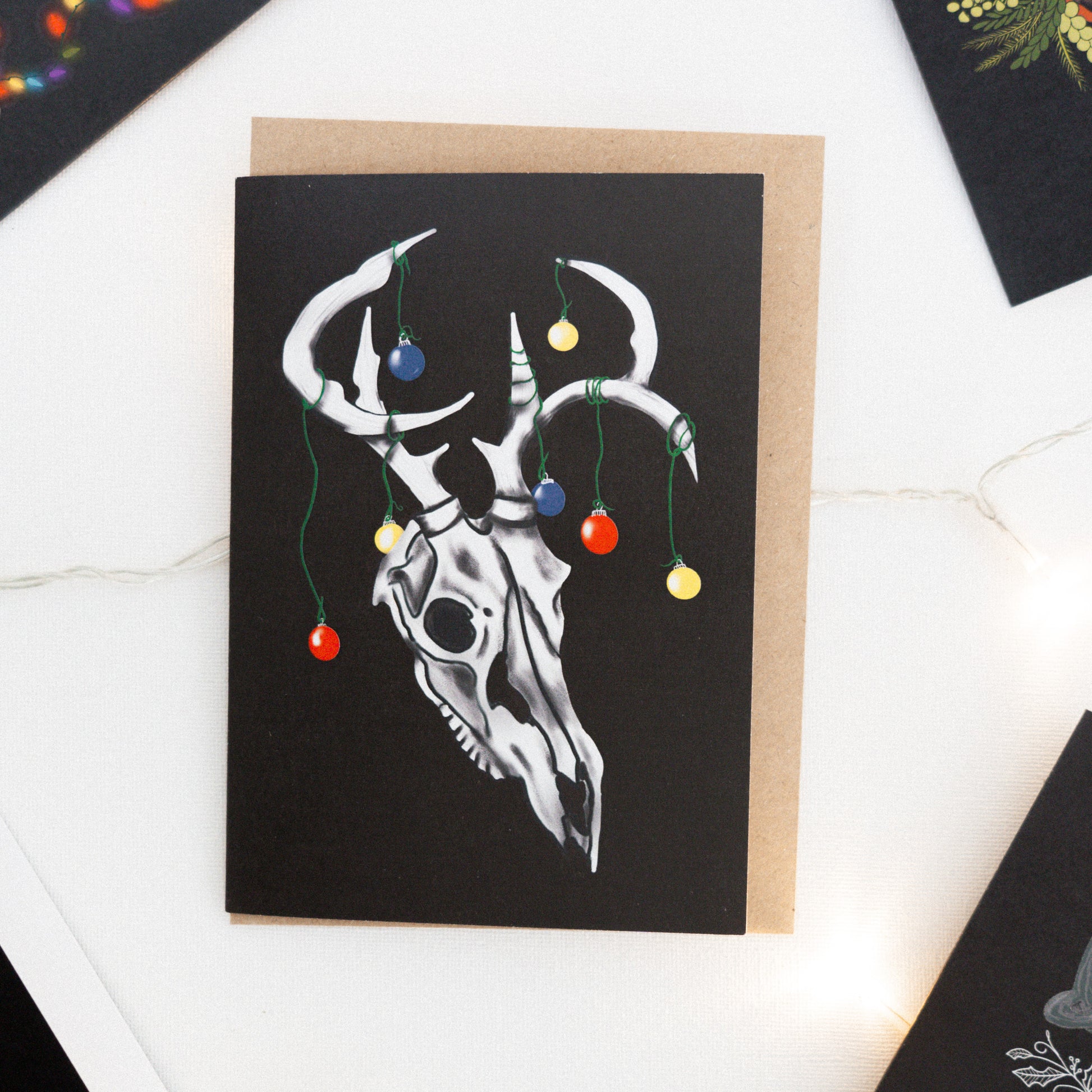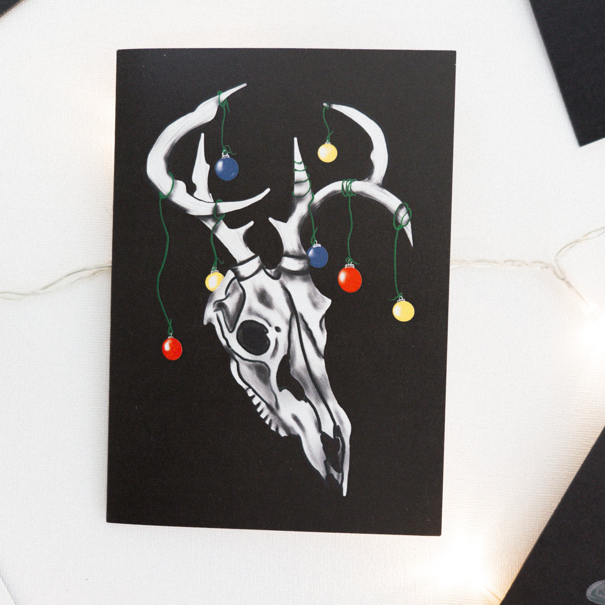My bauble reindeer skull greetings card is a fun but alternative card to celebrate christmas in gothic style.