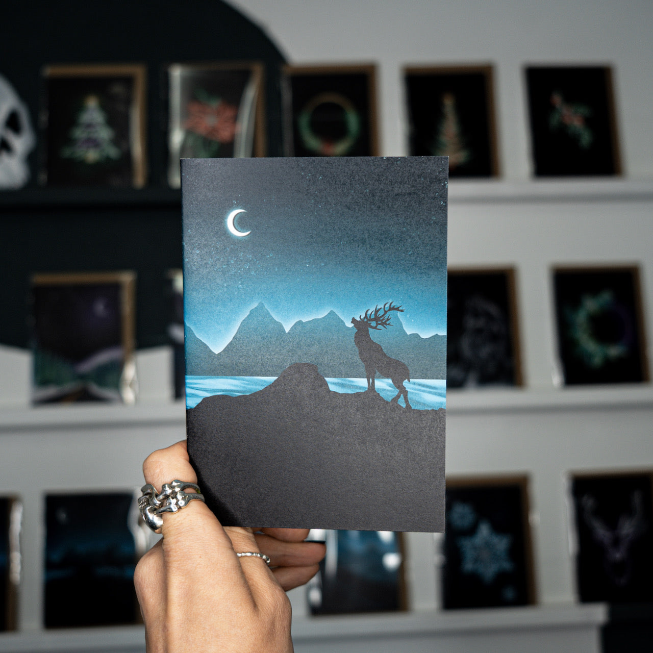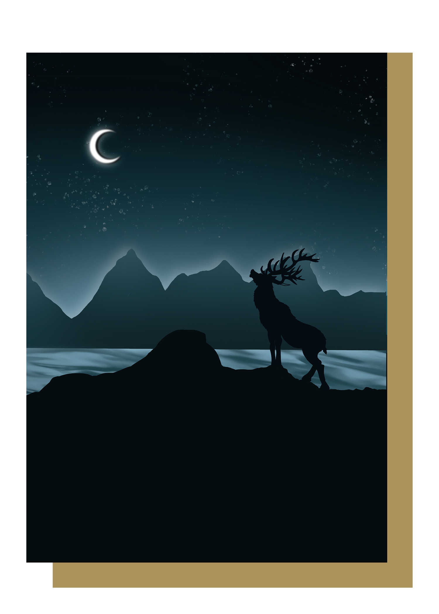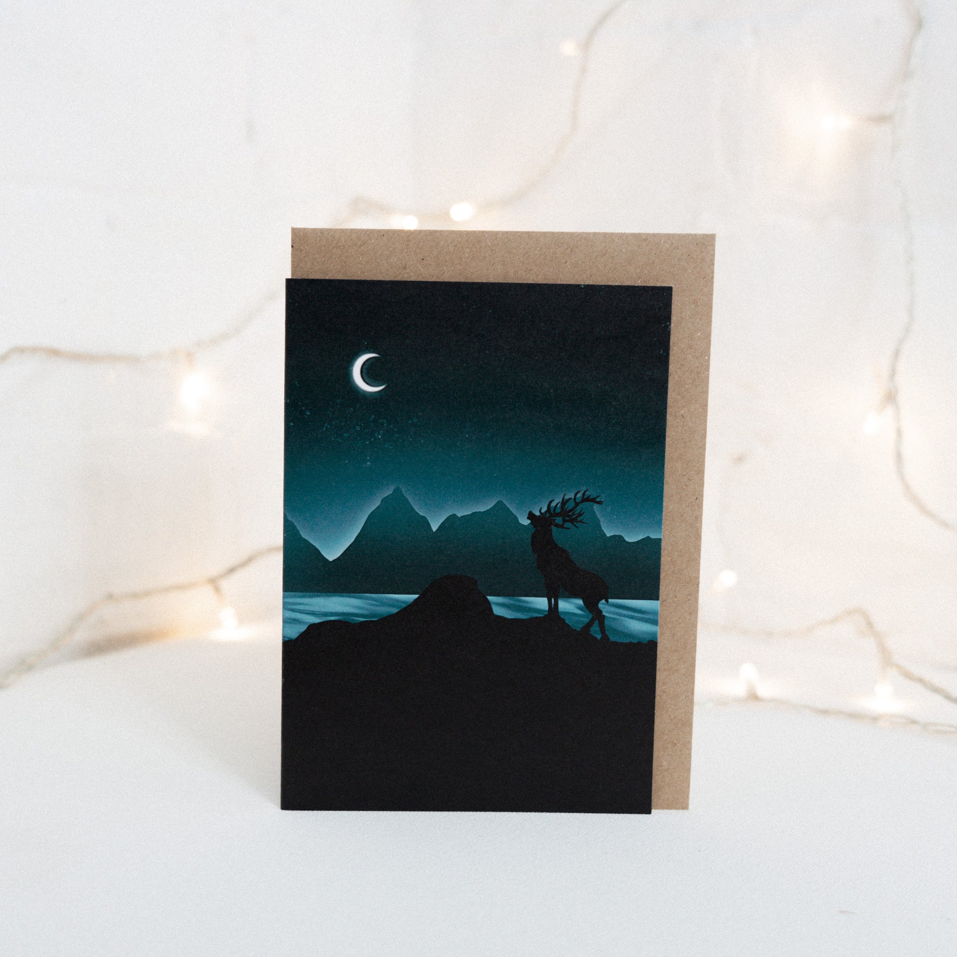 Stag at Grampian Mountain Scotland Greetings Card inspired by Terrasen from the Throne of Glass book series