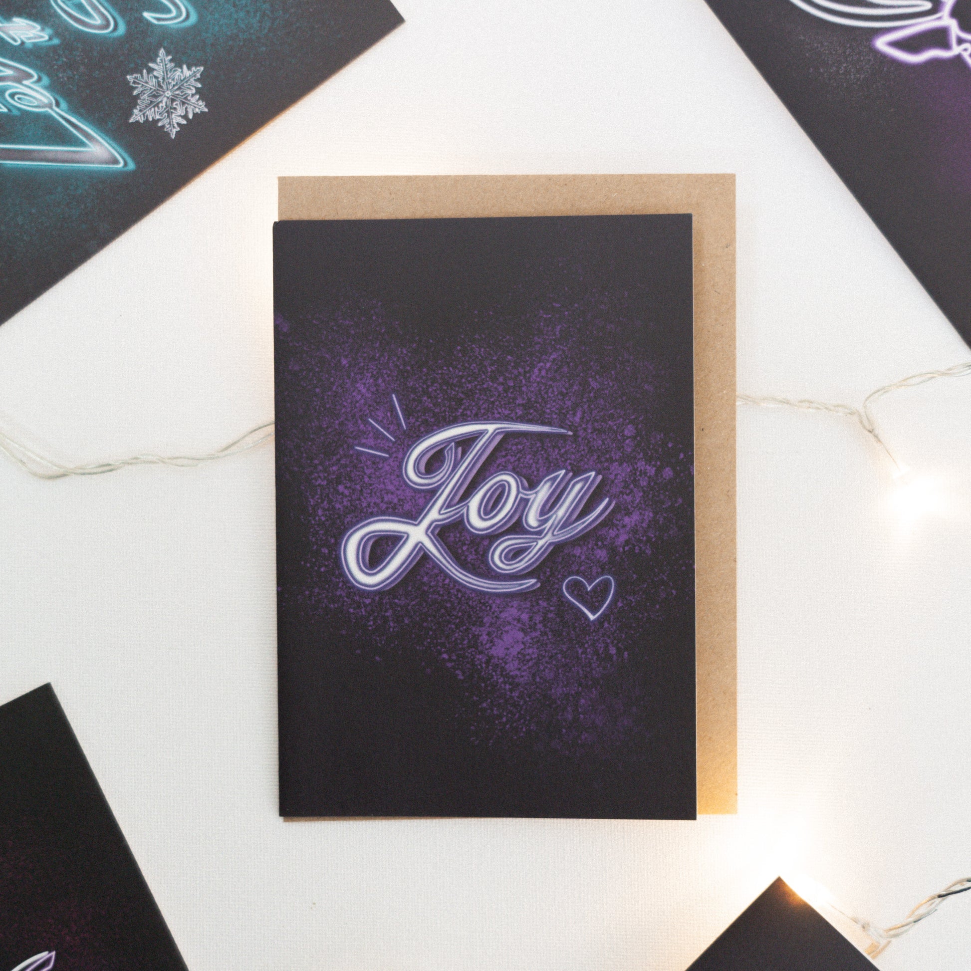 Joy Neon Christmas Card (white back)