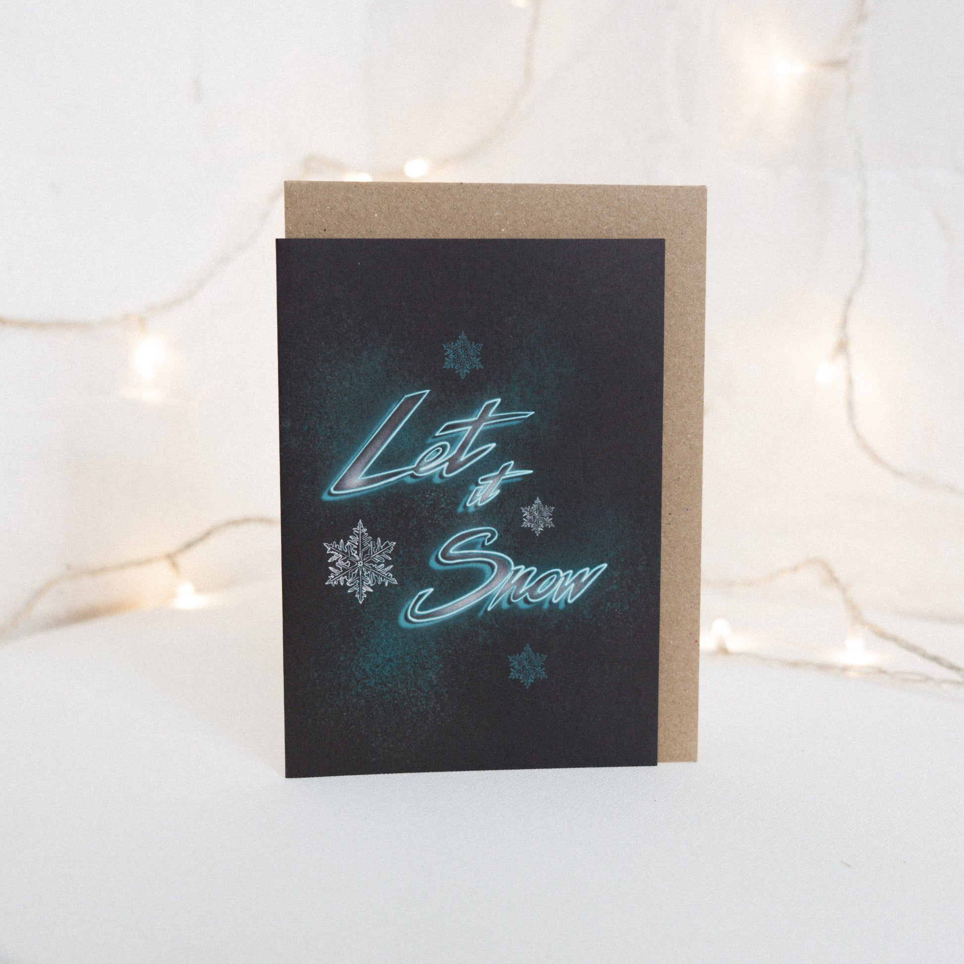 Let it Snow Neon Christmas Card (white back)