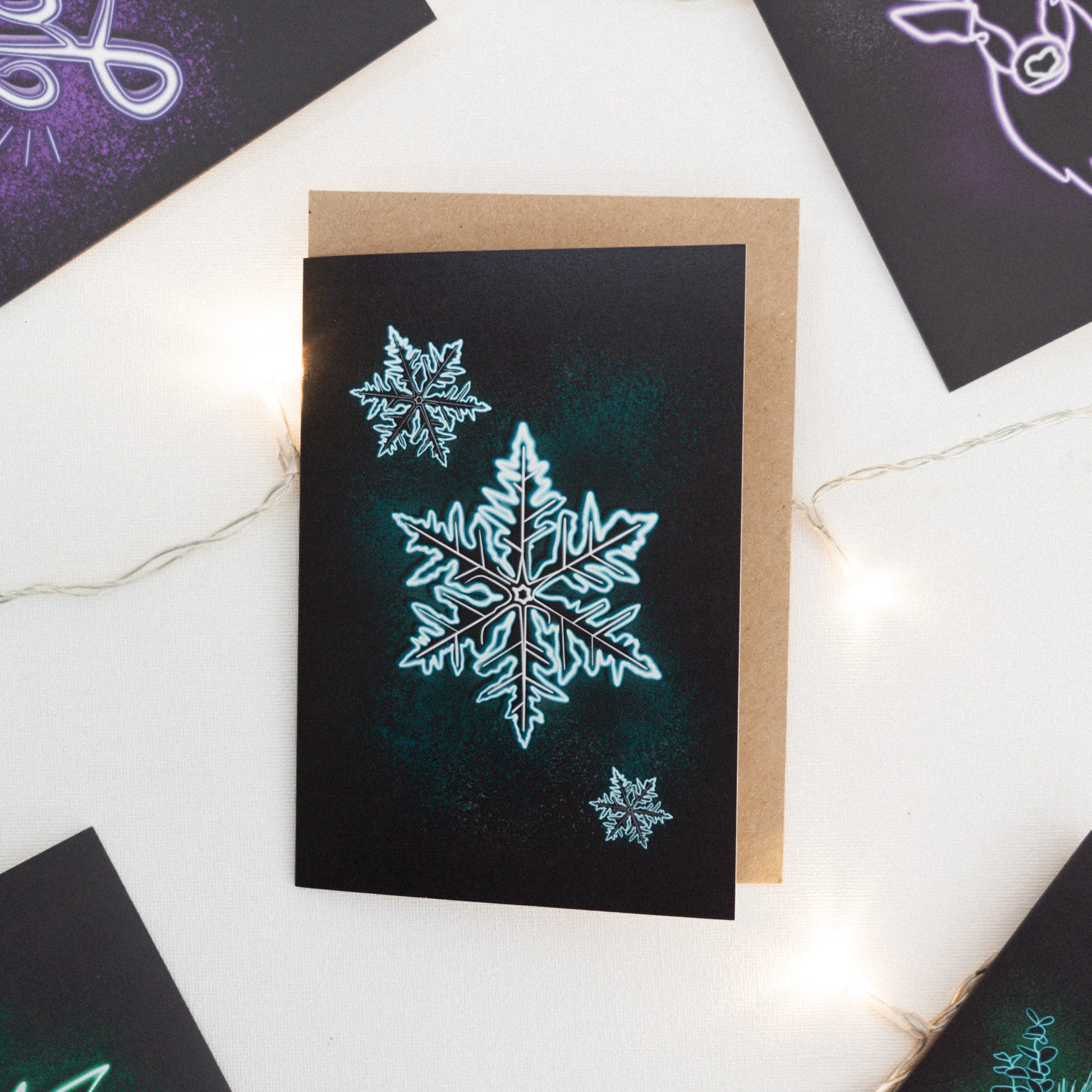 This Christmas card brings a bold neon flare to this years seasons greetings. This year's Christmas neon collection takes traditional seasonal symbols and modernised them with a bright twist.