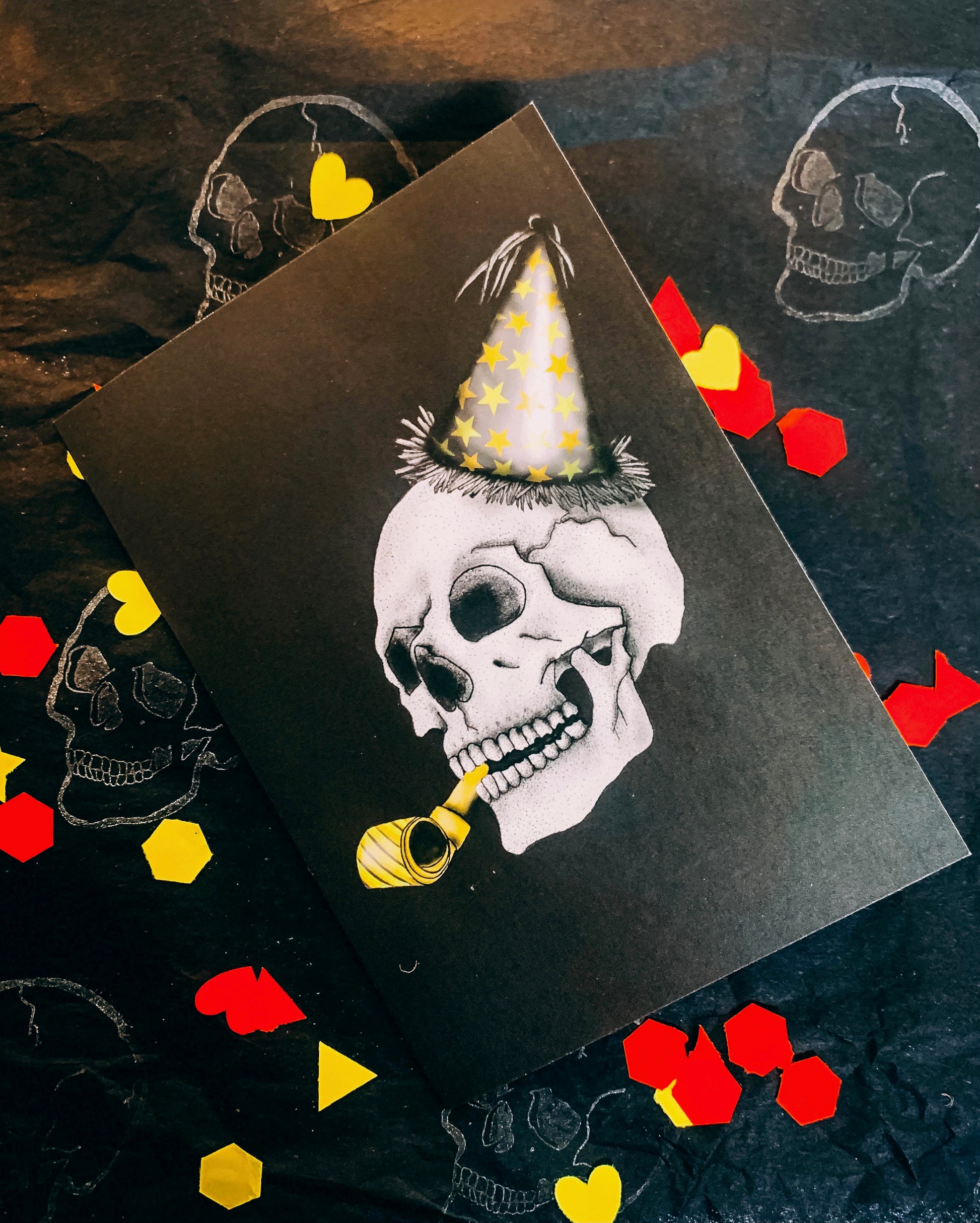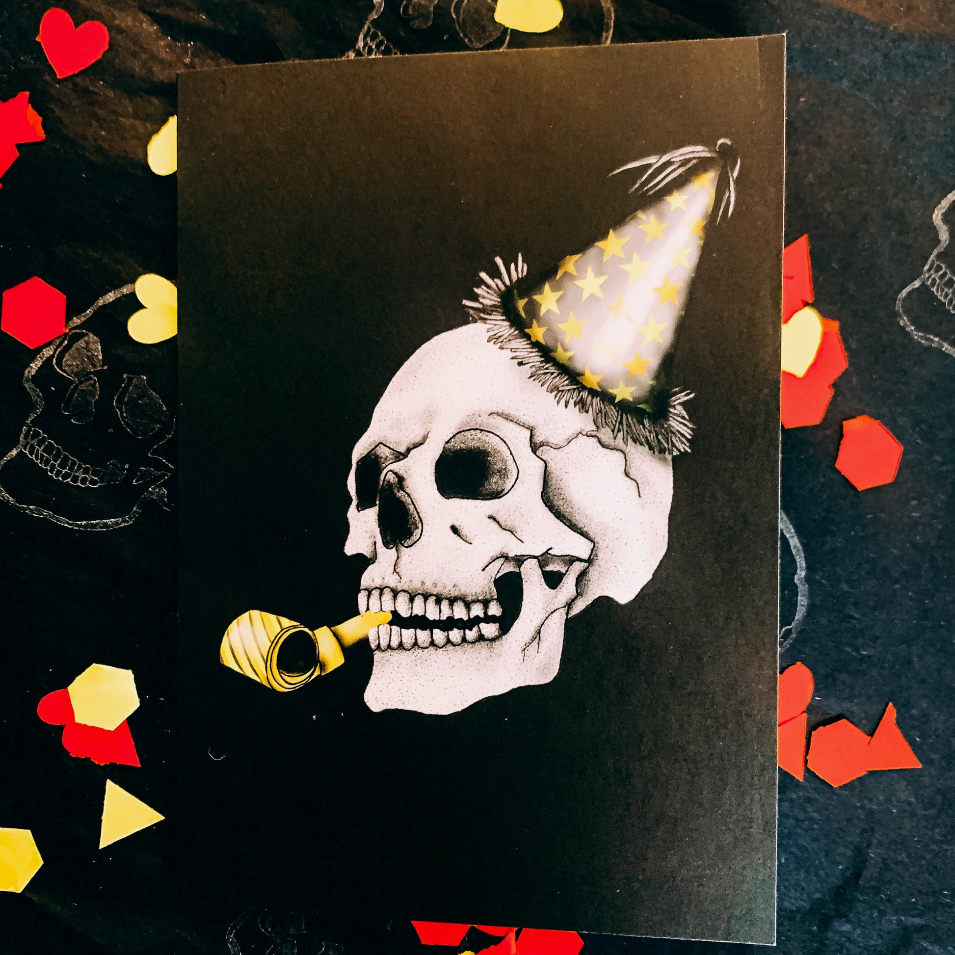 My party hat skull is a super fun yet gothic birthday card option and is my Number 1 Bestseller!