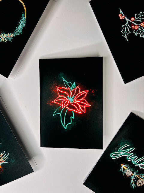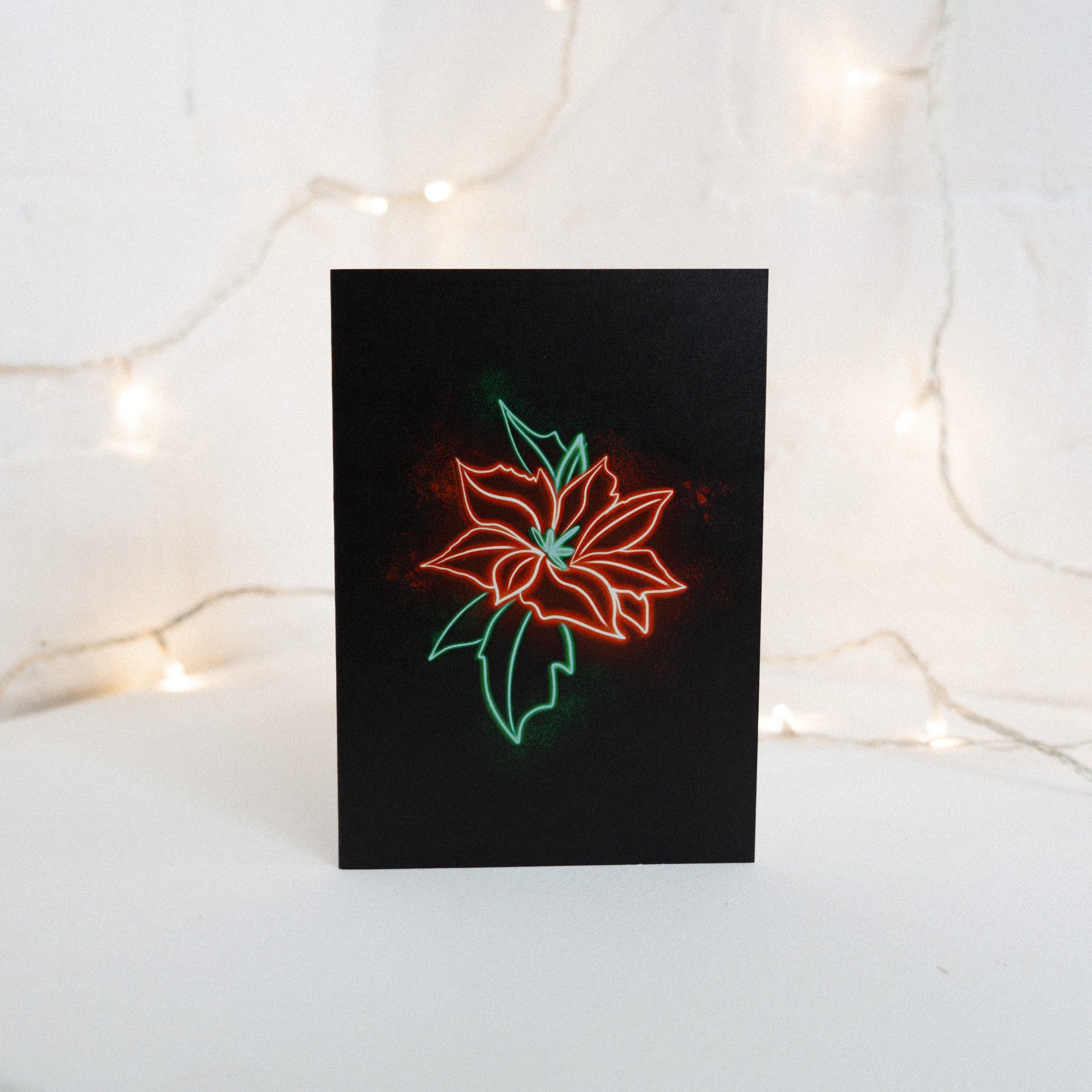 Poinsettia botanic neon Christmas card a classic seasonal symbol with a neon glow up