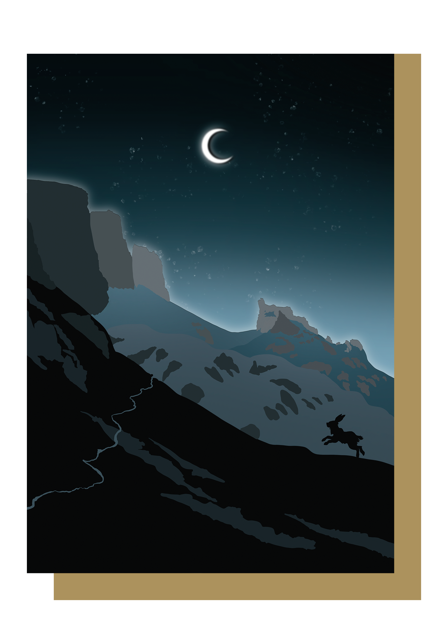 A winter landscape of Quiraing Isle of Skye with a bouncing hare.