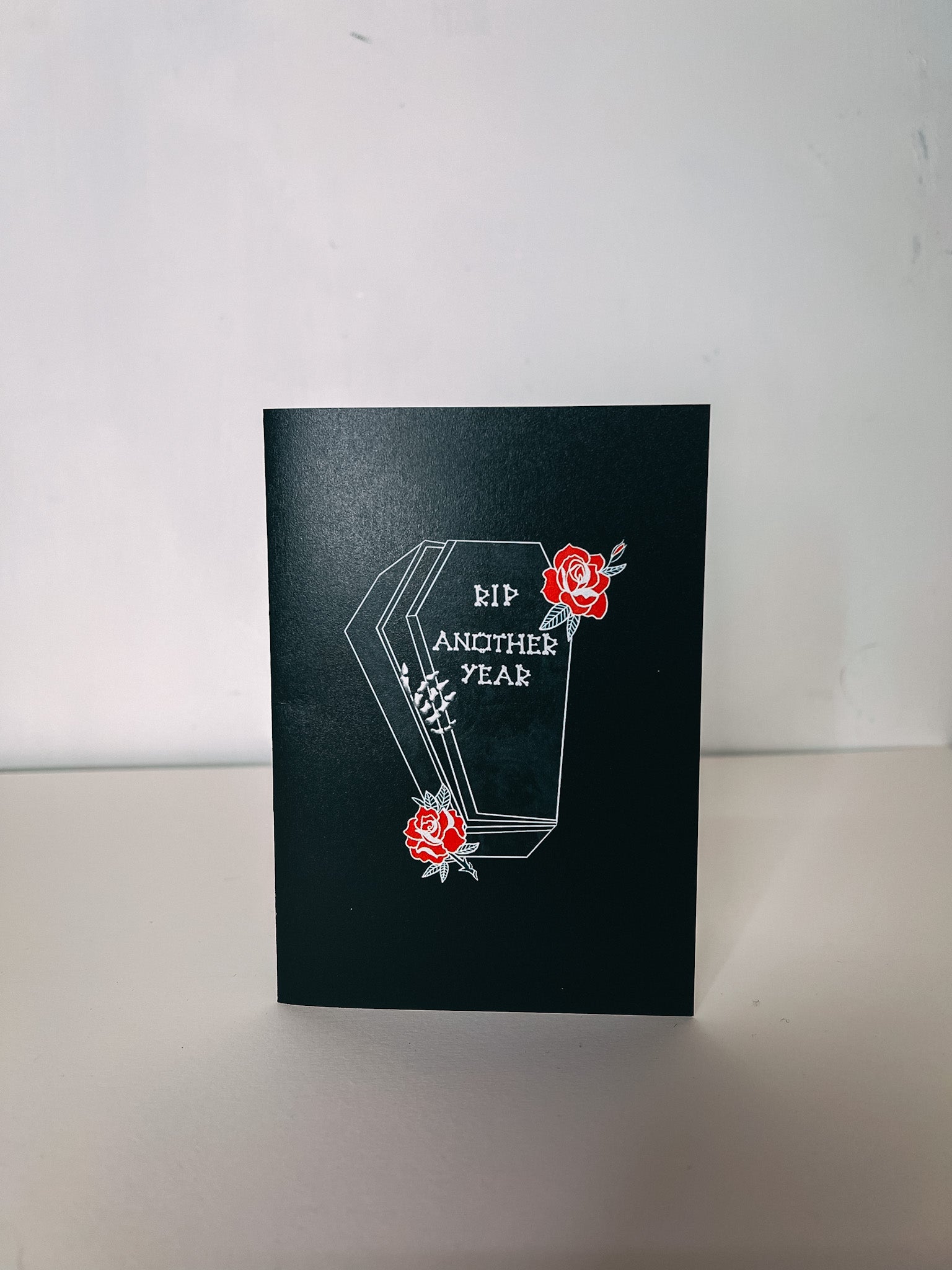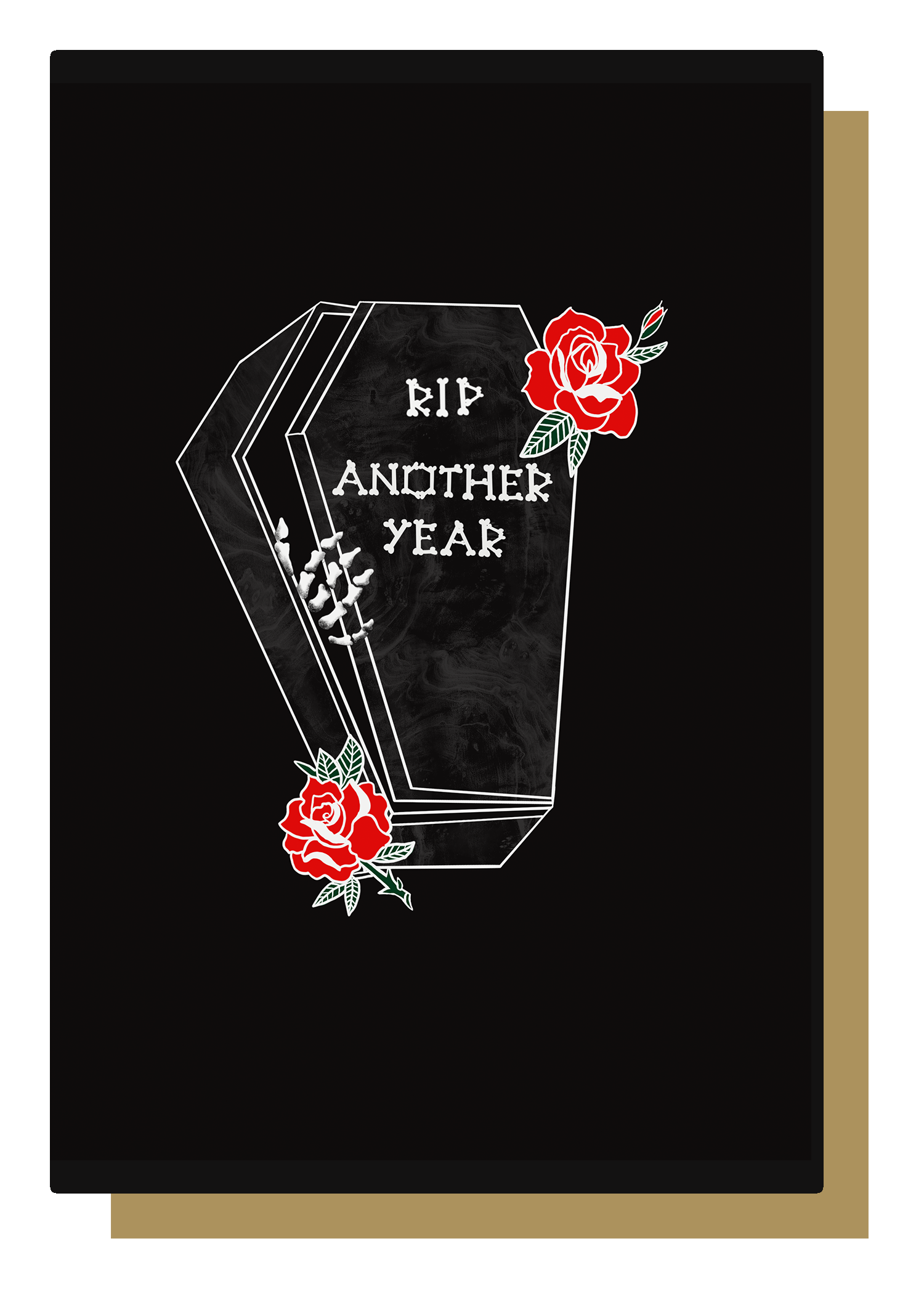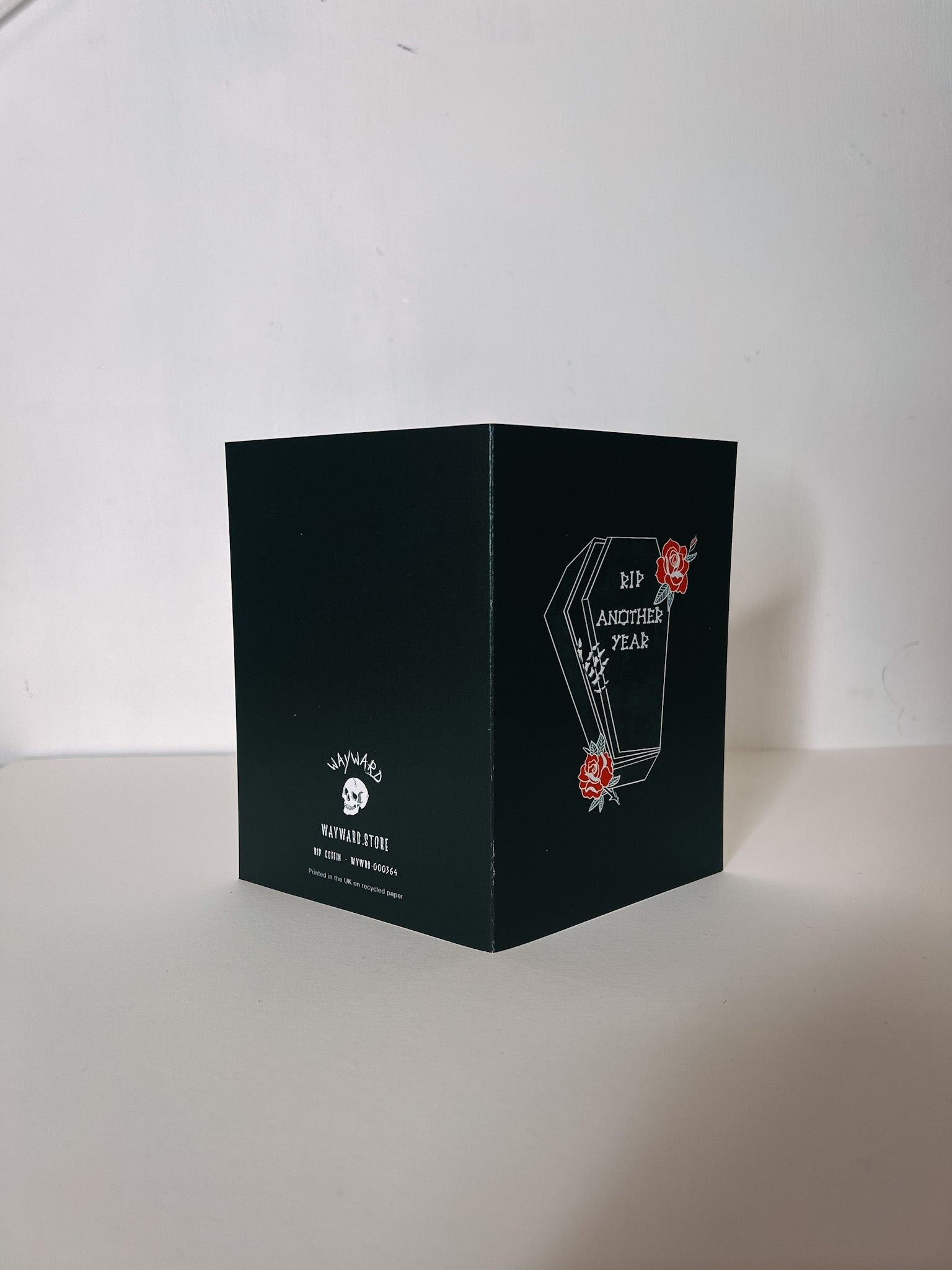 RIP Another Year Coffin Gothic Birthday Card a fun gothic card for those who are aging like a vampire