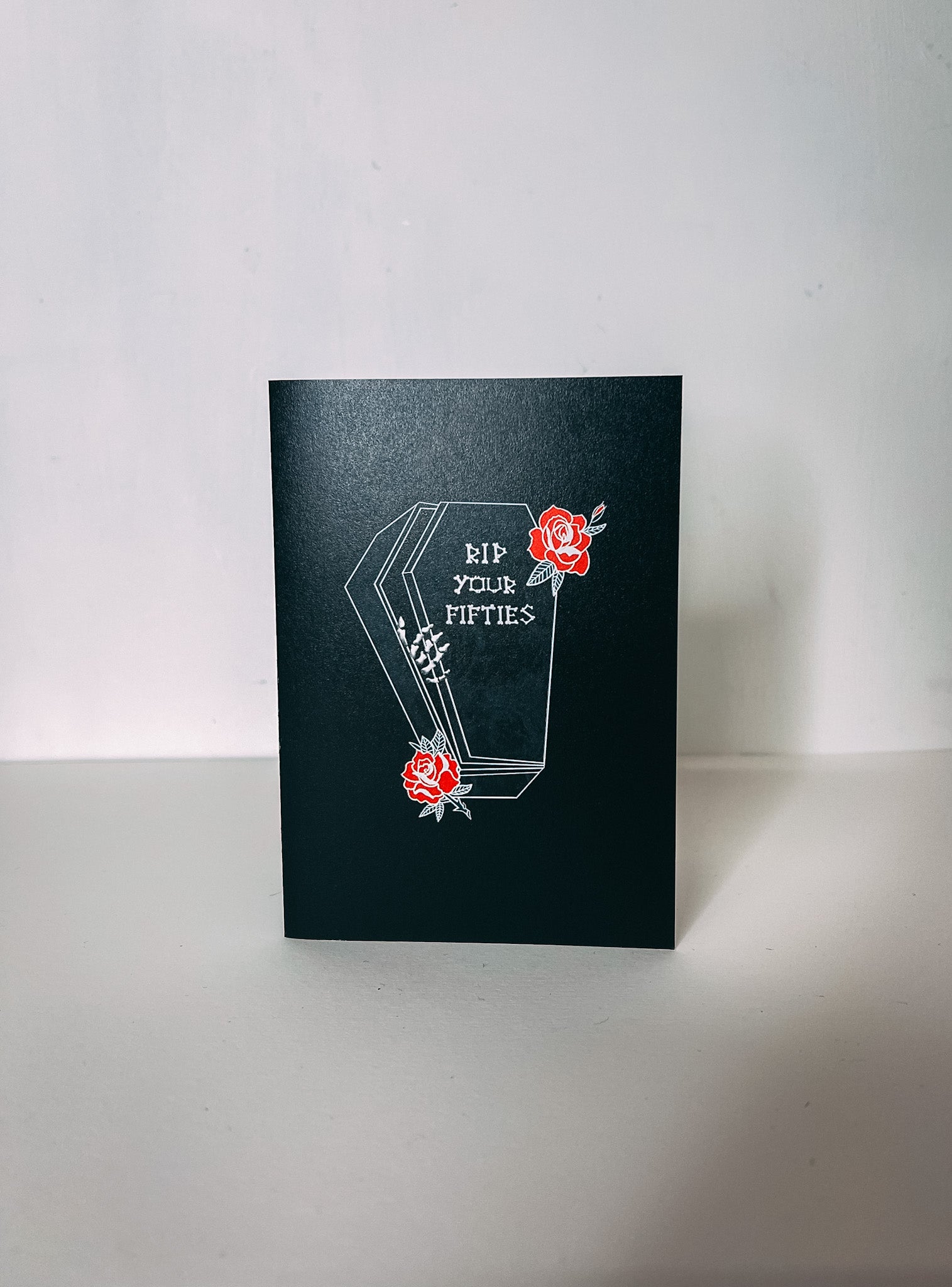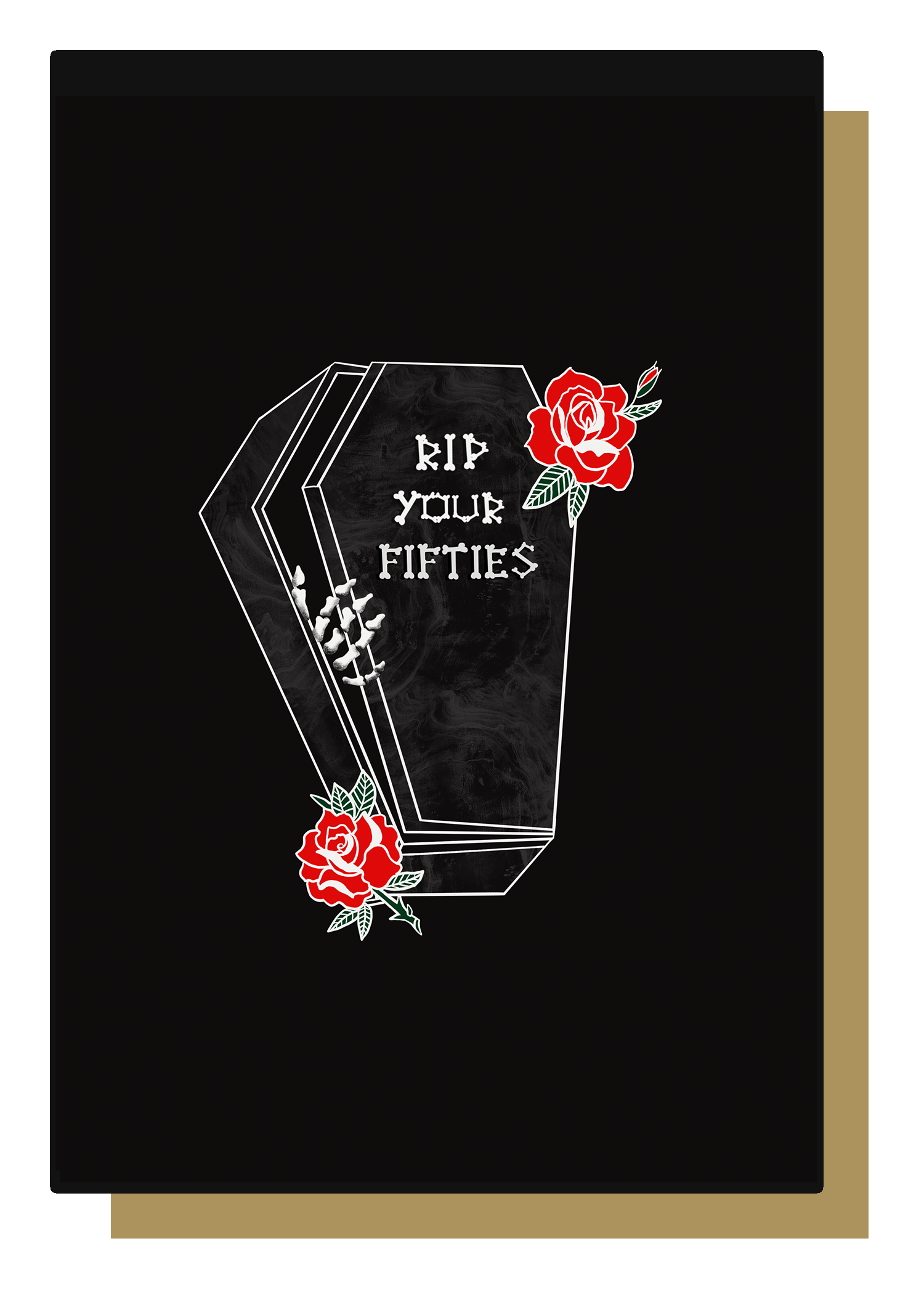 RIP Your Forties Coffin Gothic Birthday Card is fun alternative 50th birthday card