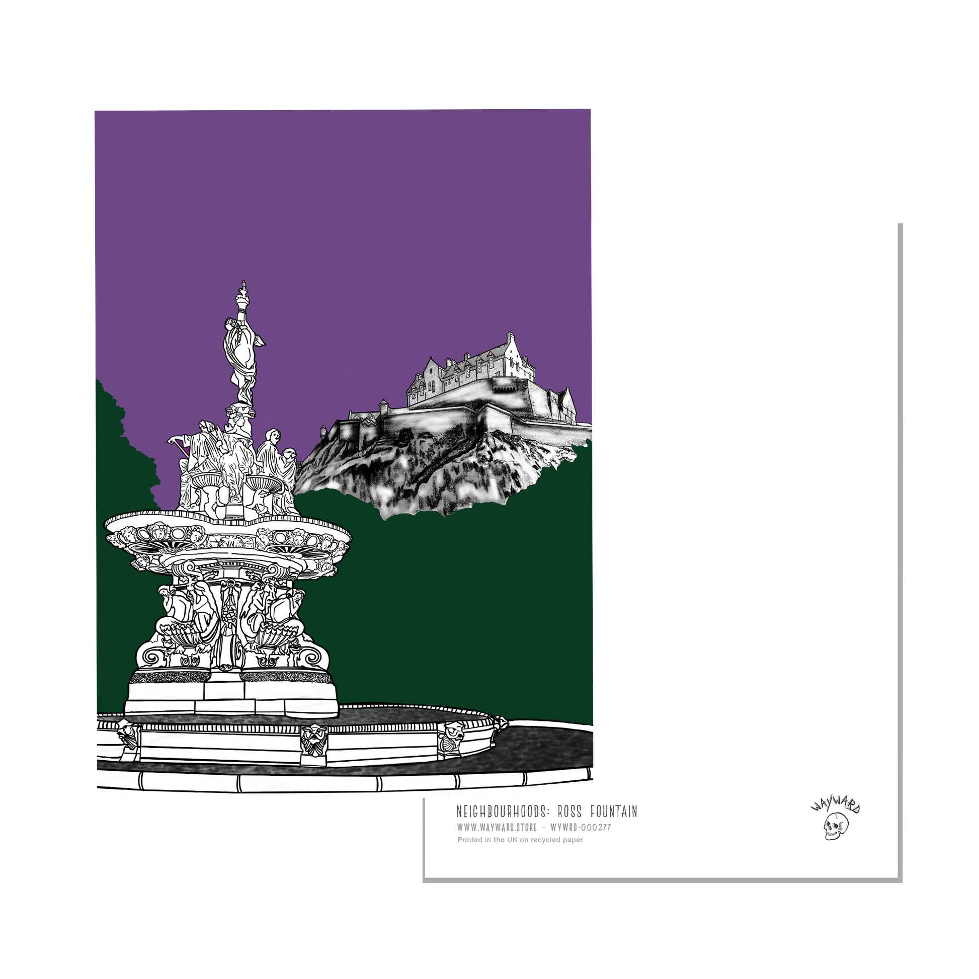 Edinburgh Postcard featuring Ross Fountain and Edinburgh Castle.