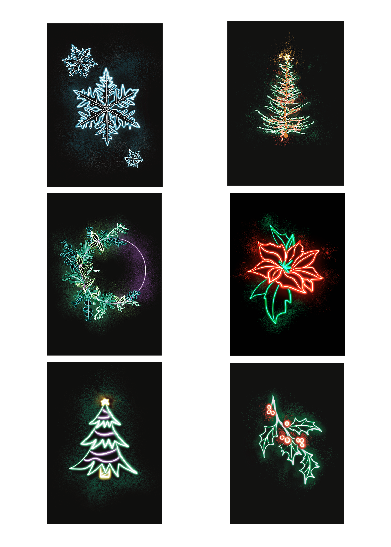 Set of 12 Neon Christmas Cards