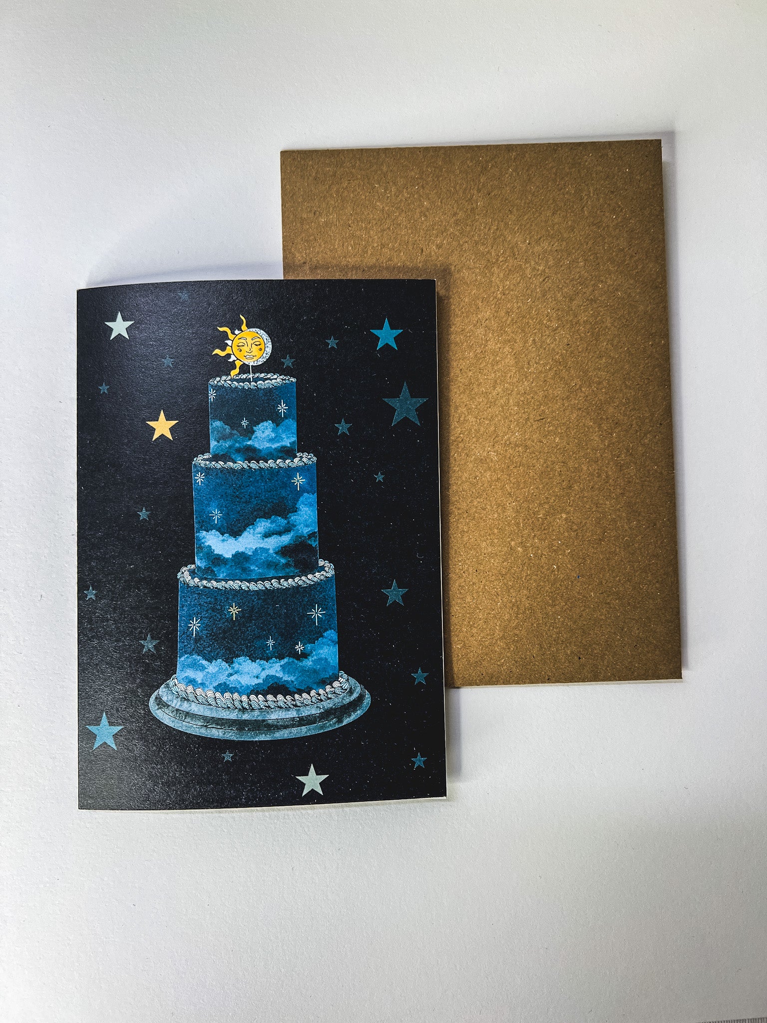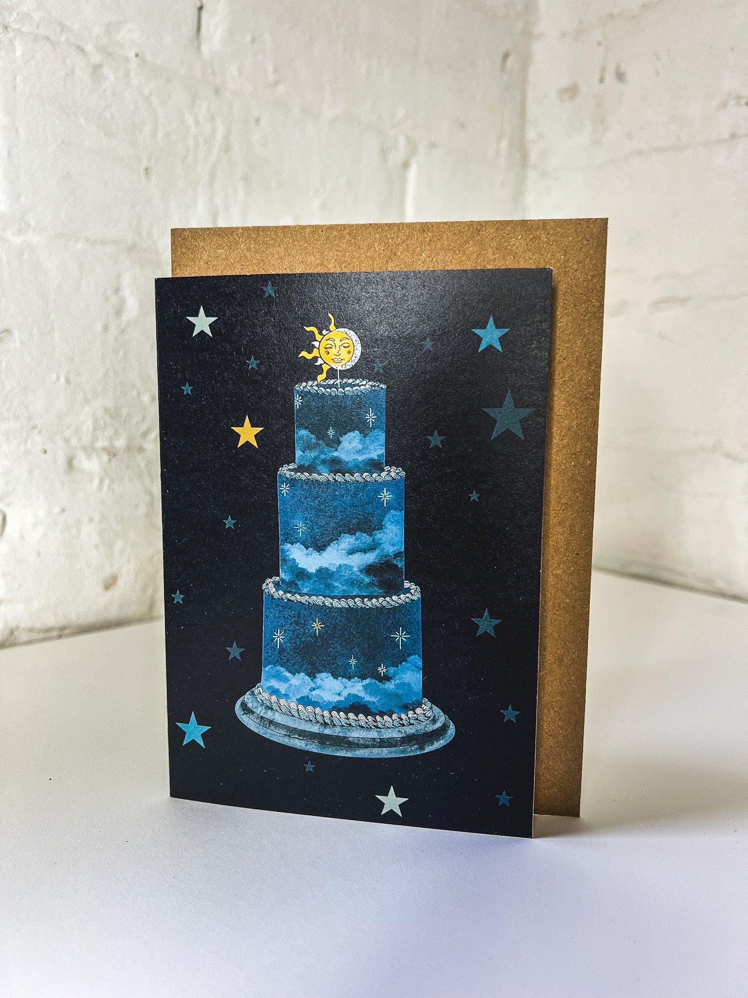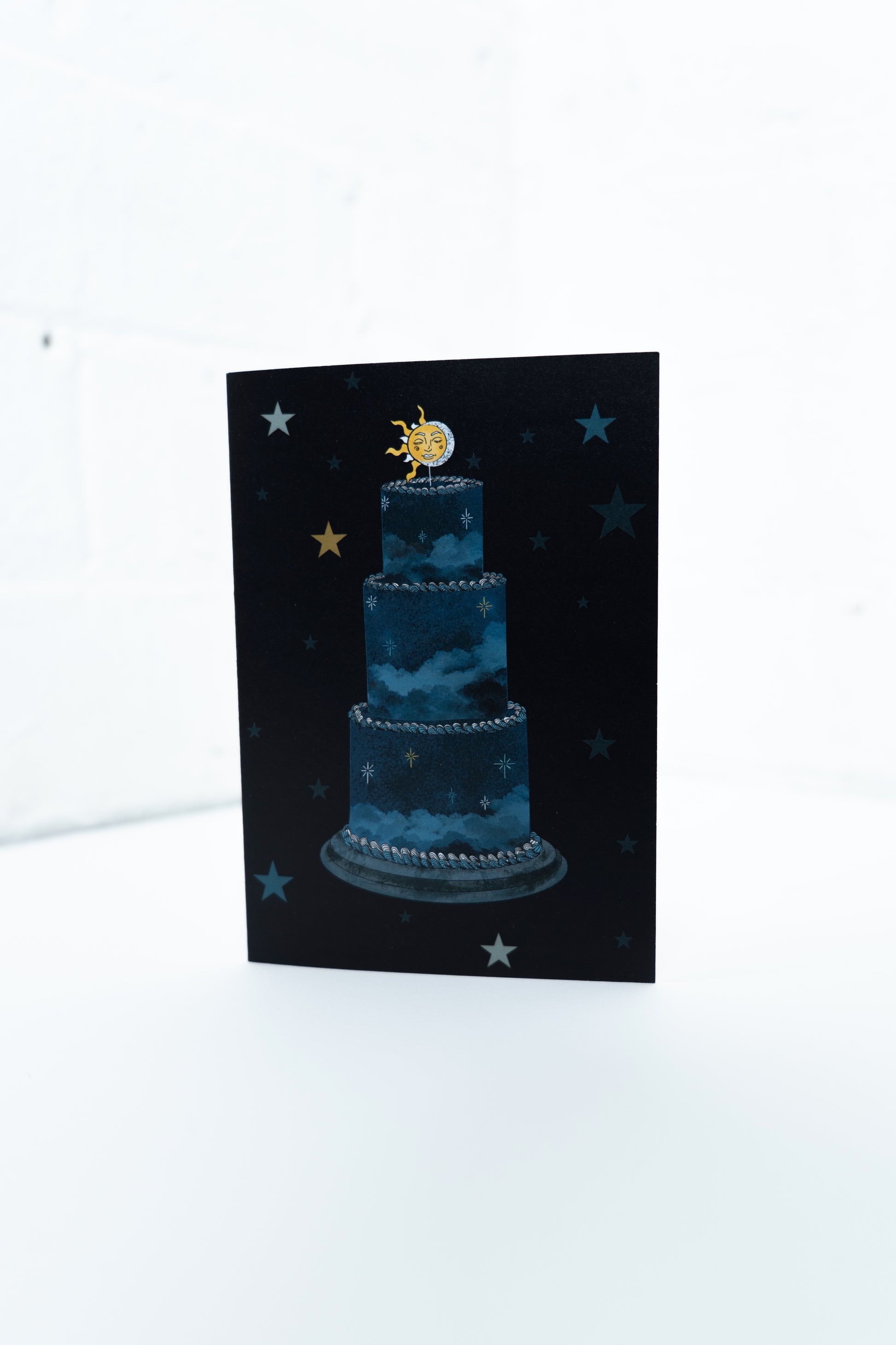 Sun, Moon and Stars Tier Cake Greetings Card a magical card for any occasion