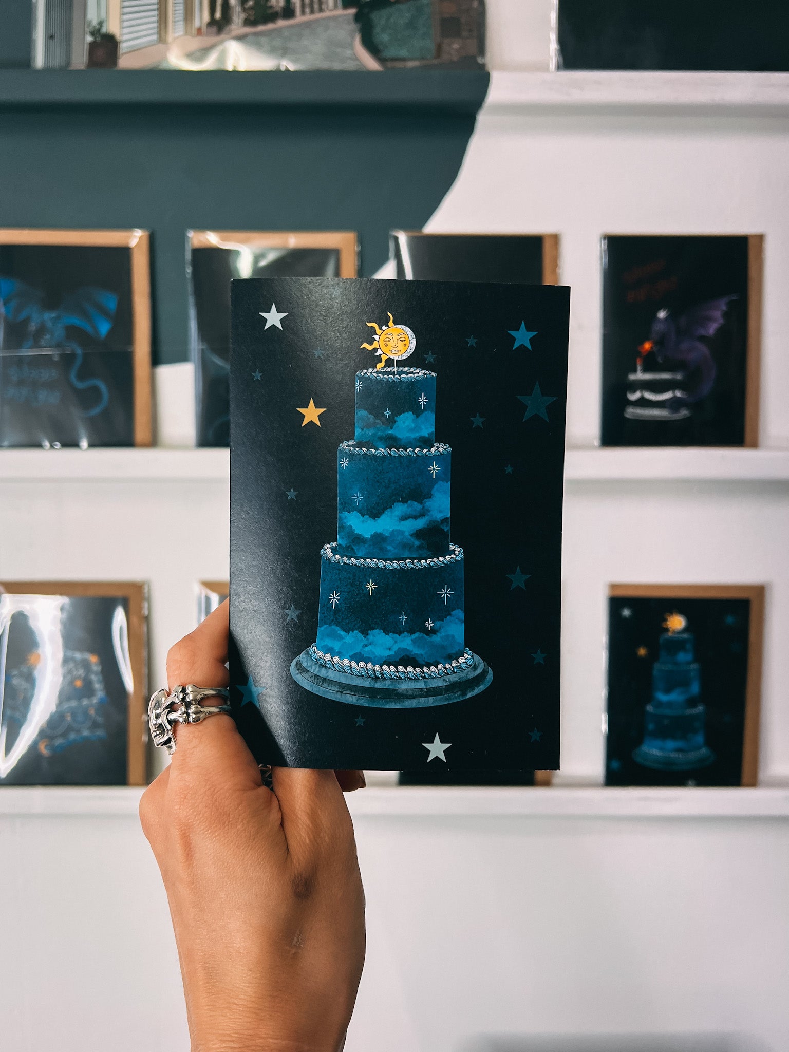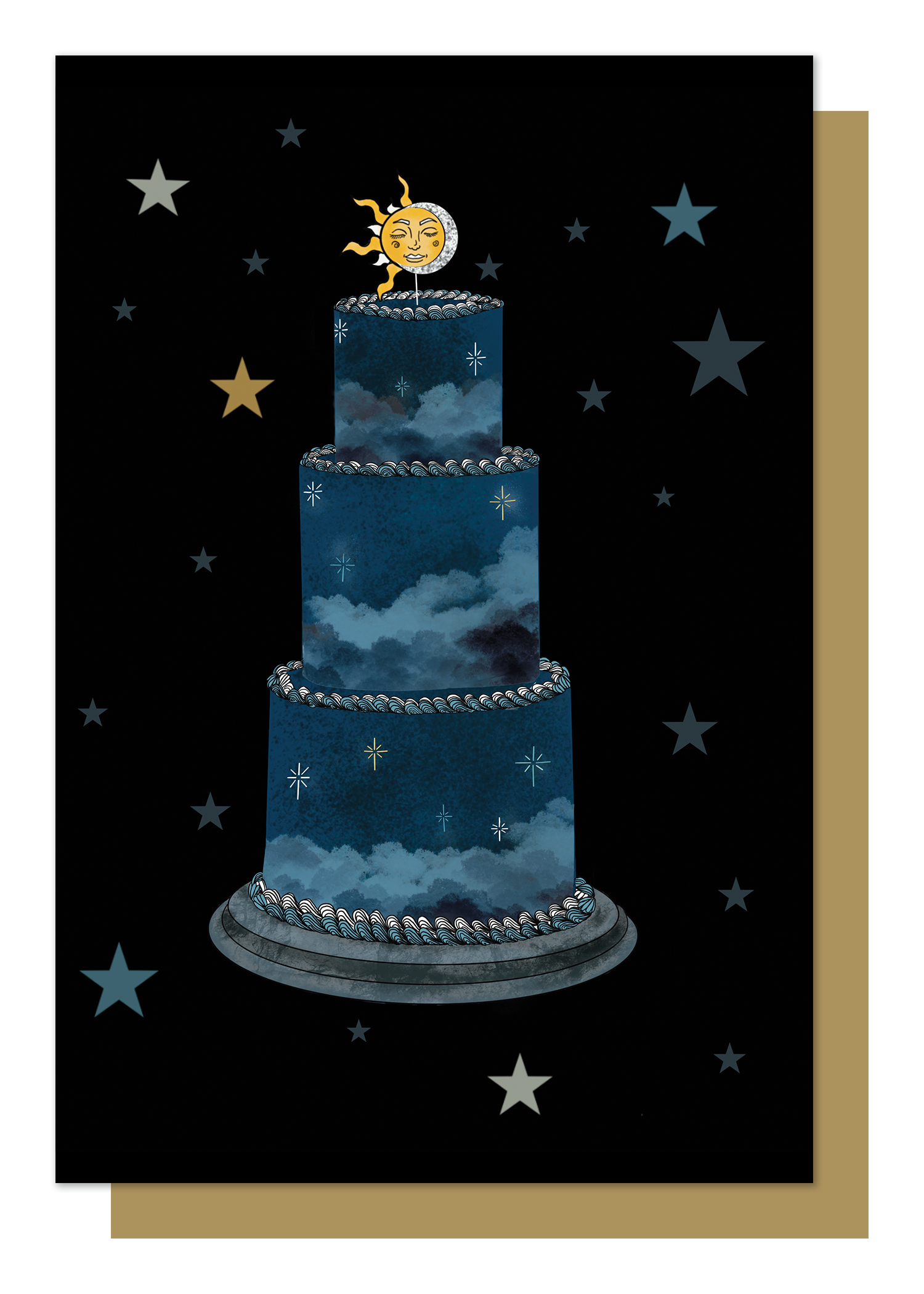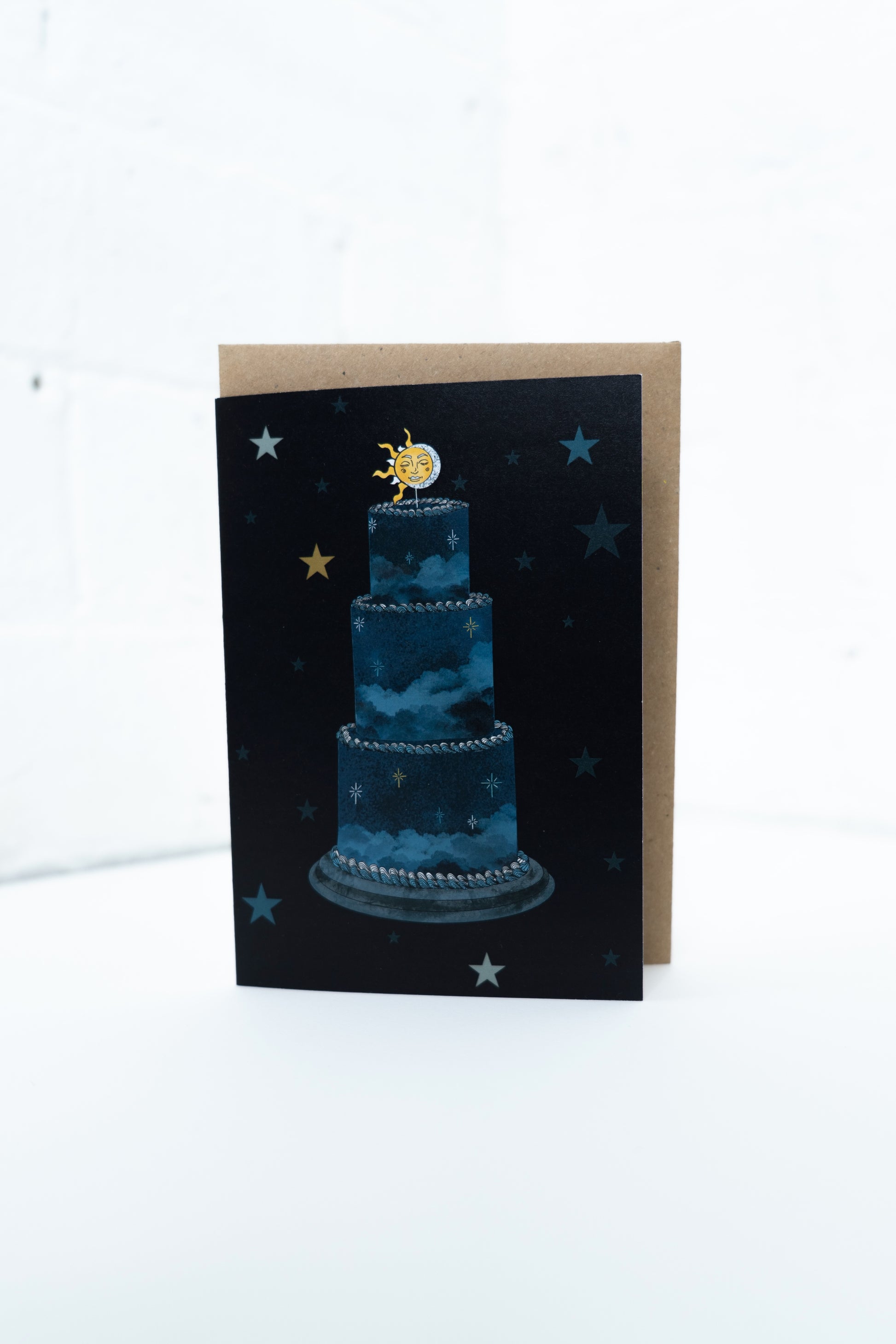 Sun, Moon and Stars Tier Cake Greetings Card a magical card for any occasion