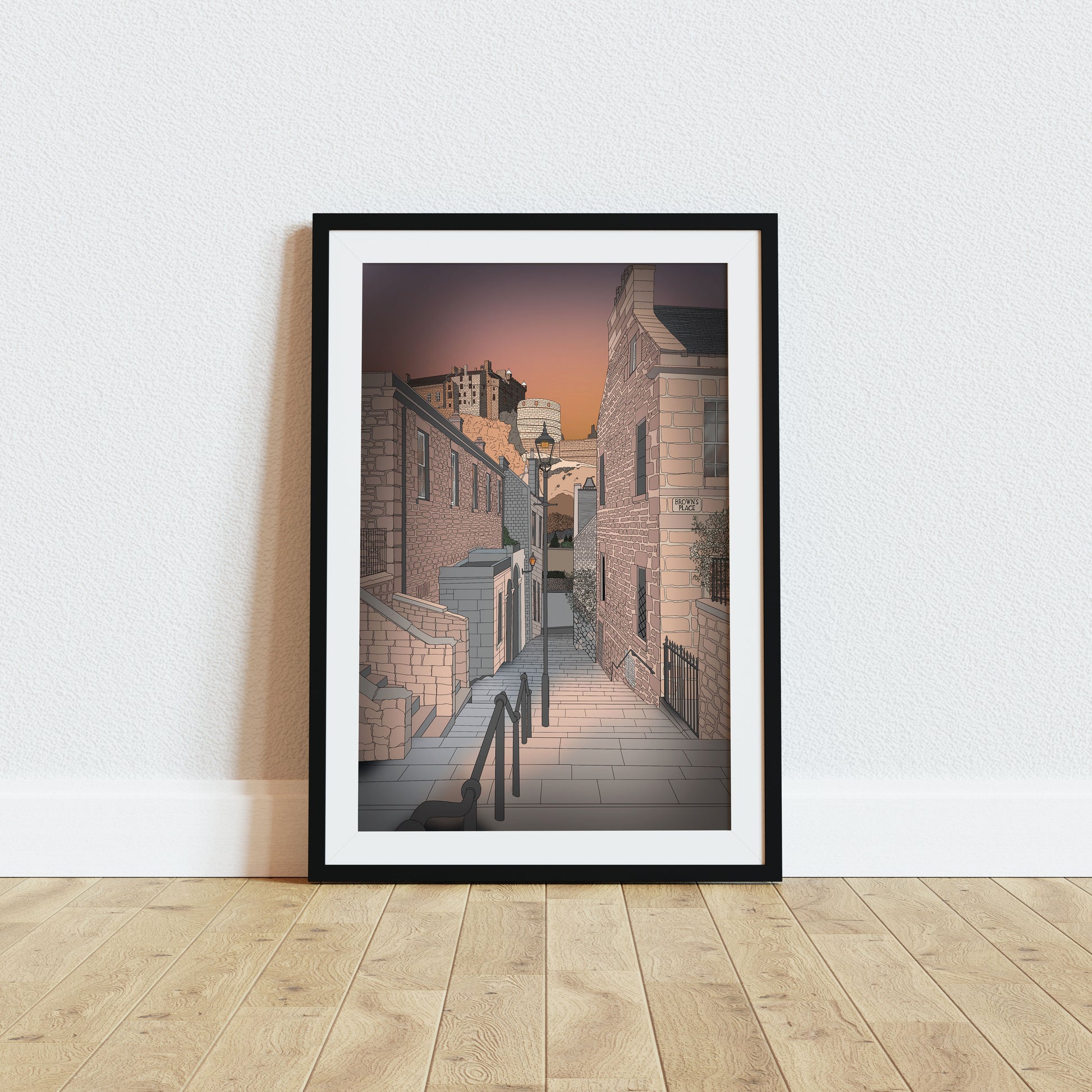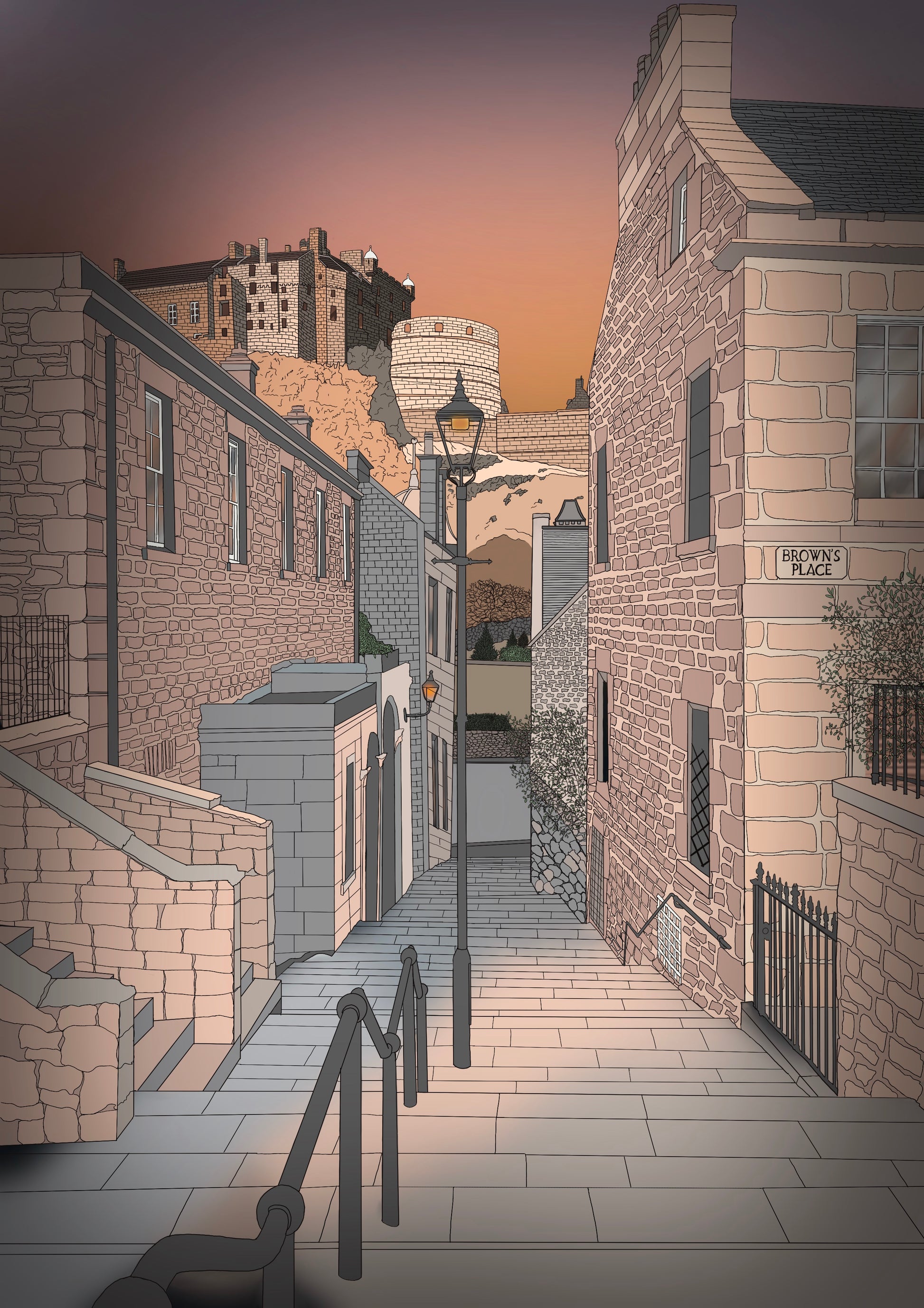 A digital drawing of one of Edinburgh most iconic views of the castle